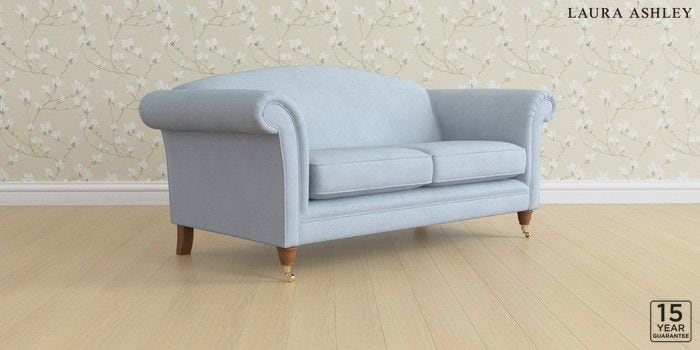 6.12.1 Buy Gloucester by Laura Ashley 3 Seater Small Sofa Ailsworth Newport Blue Low Brass Castor - Teak from the Next UK online shop Click here to use our accessible website