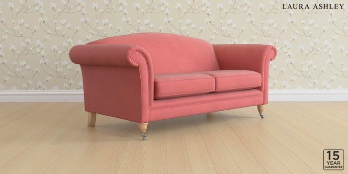 6.12.1 Buy Gloucester by Laura Ashley 3 Seater Small Sofa Ailsworth Old Rose Pink Low Chrome Castor - Light Oak from the Next UK online shop Click here to use our accessible website