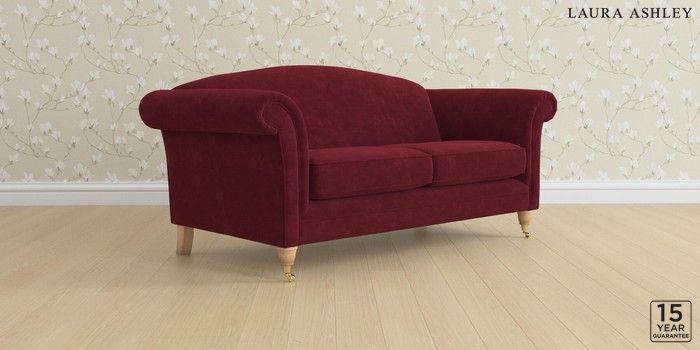 6.12.1 Buy Gloucester by Laura Ashley 3 Seater Small Sofa Alwyn Velvet Burgundy Red Low Brass Castor - Light Oak from the Next UK online shop Click here to use our accessible website