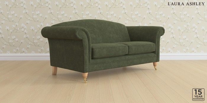 6.12.1 Buy Gloucester by Laura Ashley 3 Seater Small Sofa Alwyn Velvet Ivy Green Low Brass Castor - Light Oak from the Next UK online shop Click here to use our accessible website