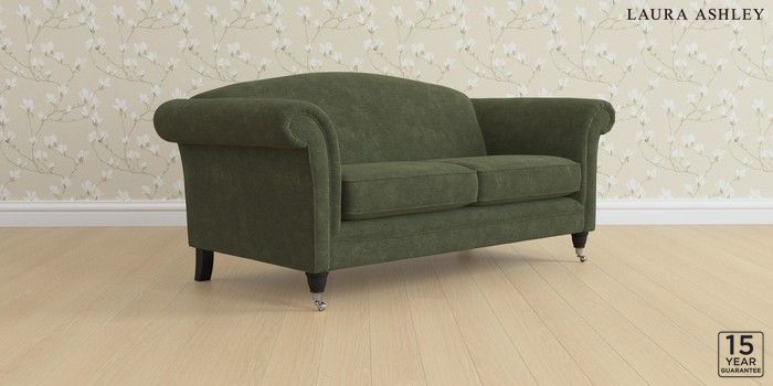 6.12.1 Buy Gloucester by Laura Ashley 3 Seater Small Sofa Alwyn Velvet Ivy Green Low Chrome Castor - Black from the Next UK online shop Click here to use our accessible website
