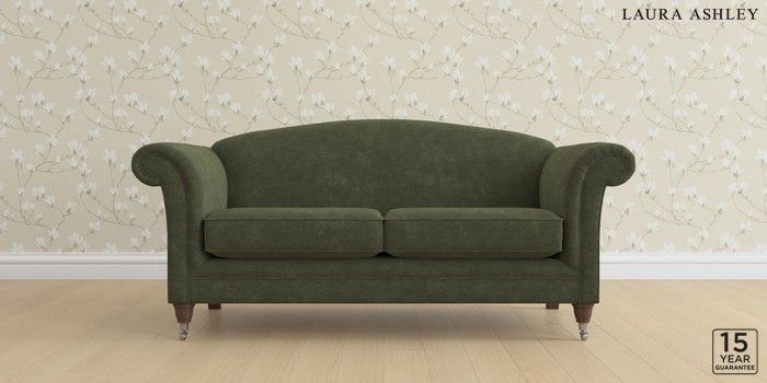 6.12.1 Buy Gloucester by Laura Ashley 3 Seater Small Sofa Alwyn Velvet Ivy Green Low Chrome Castor - Chestnut from the Next UK online shop Click here to use our accessible website