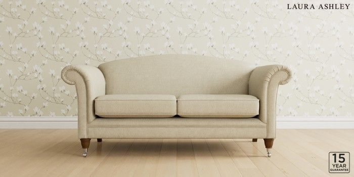 6.12.13 Buy Gloucester by Laura Ashley 3 Seater Small Sofa Anneliese Natural Low Chrome Castor - Teak from the Next UK online shop Click here to use our accessible website