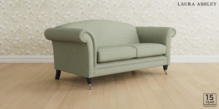 6.12.13 Buy Gloucester by Laura Ashley 3 Seater Small Sofa Anneliese Sage Green Low Chrome Castor - Black from the Next UK online shop Click here to use our accessible website