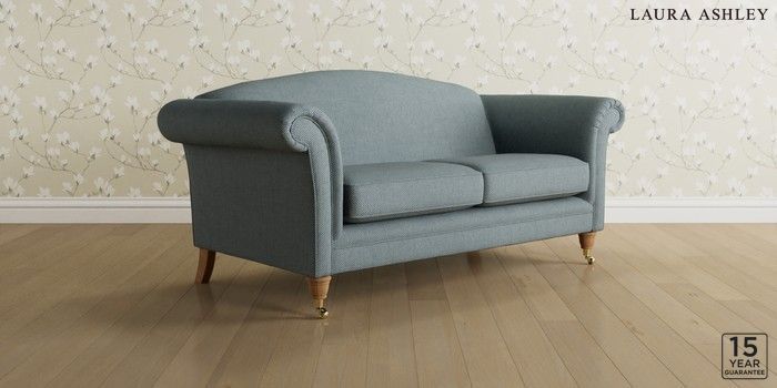 6.12.1 Buy Gloucester by Laura Ashley 3 Seater Small Sofa Anneliese Seaspray Blue Low Brass Castor - Light Oak from the Next UK online shop Click here to use our accessible website