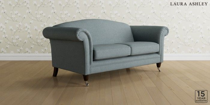 6.12.1 Buy Gloucester by Laura Ashley 3 Seater Small Sofa Anneliese Seaspray Blue Low Chrome Castor - Chestnut from the Next UK online shop Click here to use our accessible website