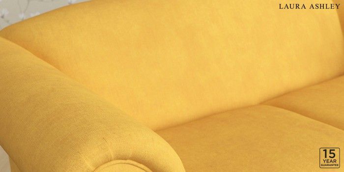6.12.1 Buy Gloucester by Laura Ashley 3 Seater Small Sofa Bainton Ochre Yellow Low Chrome Castor - Teak from the Next UK online shop Click here to use our accessible website