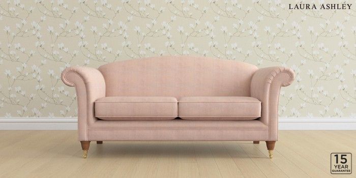6.12.1 Buy Gloucester by Laura Ashley 3 Seater Small Sofa Edwin Chenille Blush Pink Low Brass Castor - Teak from the Next UK online shop Click here to use our accessible website