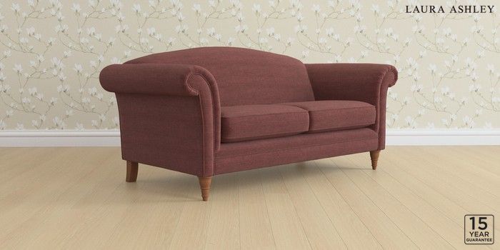 6.12.13 Buy Gloucester by Laura Ashley 3 Seater Small Sofa Edwin Chenille Burgundy Red Low Turned - Teak from the Next UK online shop Click here to use our accessible website