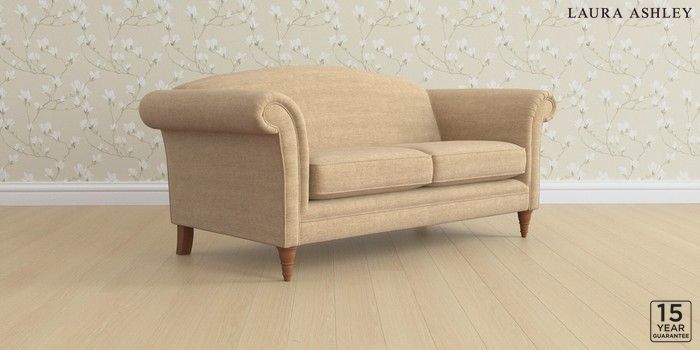 6.12.1 Buy Gloucester by Laura Ashley 3 Seater Small Sofa Edwin Chenille Gold Natural Low Turned - Teak from the Next UK online shop Click here to use our accessible website