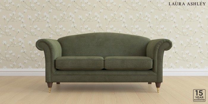 6.12.13 Buy Gloucester by Laura Ashley 3 Seater Small Sofa Edwin Chenille Hedgerow Green Low Brass Castor - Chestnut from the Next UK online shop Click here to use our accessible website