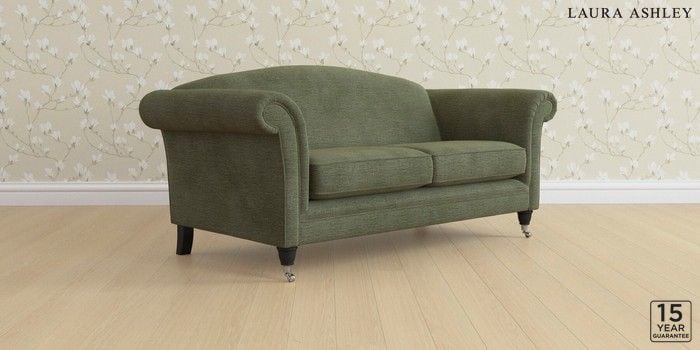 6.12.13 Buy Gloucester by Laura Ashley 3 Seater Small Sofa Edwin Chenille Hedgerow Green Low Chrome Castor - Black from the Next UK online shop Click here to use our accessible website