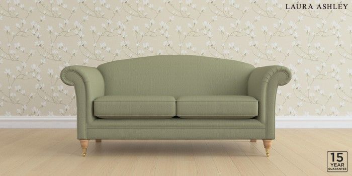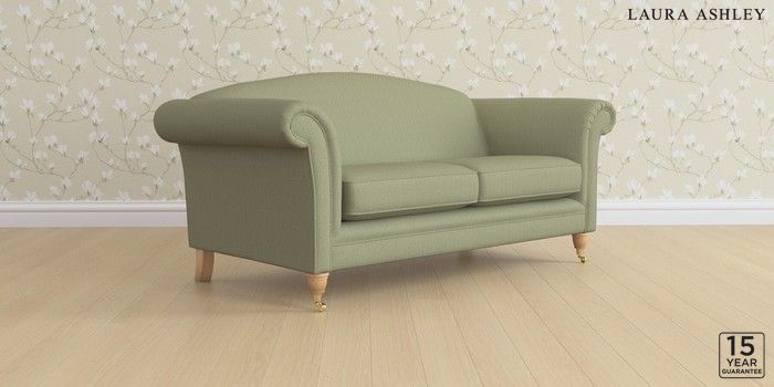 6.12.1 Buy Gloucester by Laura Ashley 3 Seater Small Sofa Edwin Herringbone Hedgerow Green Low Brass Castor - Light Oak from the Next UK online shop Click here to use our accessible website