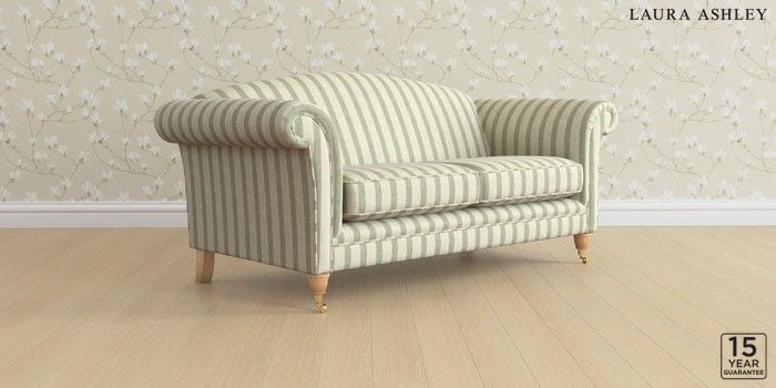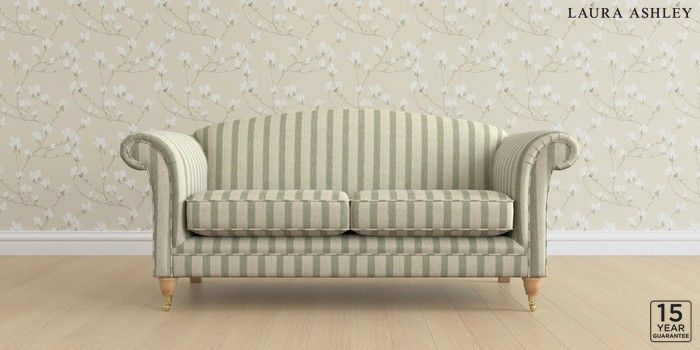6.12.13 Buy Gloucester by Laura Ashley 3 Seater Small Sofa Kinsham Stripe Hedgerow Green Low Brass Castor - Light Oak from the Next UK online shop Click here to use our accessible website