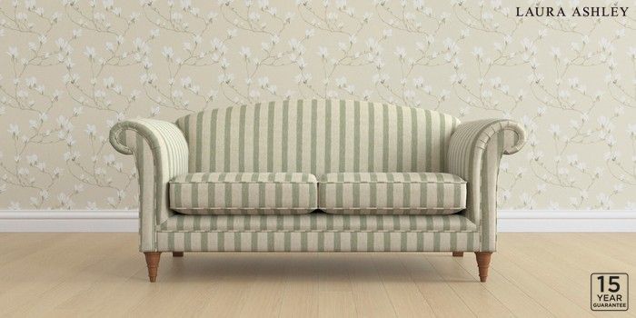 6.12.13 Buy Gloucester by Laura Ashley 3 Seater Small Sofa Kinsham Stripe Hedgerow Green Low Turned - Teak from the Next UK online shop Click here to use our accessible website
