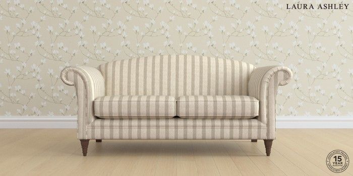 6.12.1 Buy Gloucester by Laura Ashley 3 Seater Small Sofa Kinsham Stripe Natural Low Turned - Chestnut from the Next UK online shop Click here to use our accessible website