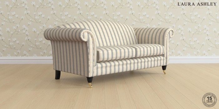 6.12.1 Buy Gloucester by Laura Ashley 3 Seater Small Sofa Kinsham Stripe Seaspray Blue Low Brass Castor - Black from the Next UK online shop Click here to use our accessible website