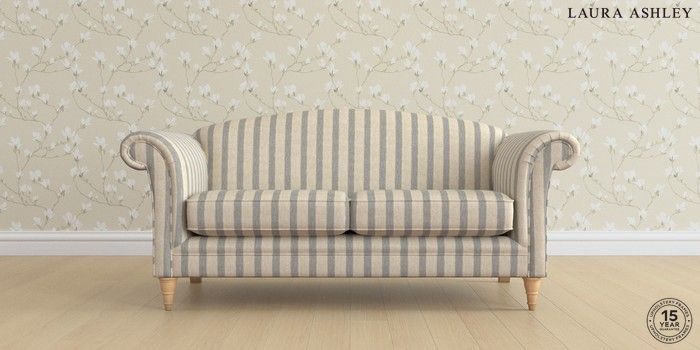 6.12.1 Buy Gloucester by Laura Ashley 3 Seater Small Sofa Kinsham Stripe Seaspray Blue Low Turned - Light Oak from the Next UK online shop Click here to use our accessible website