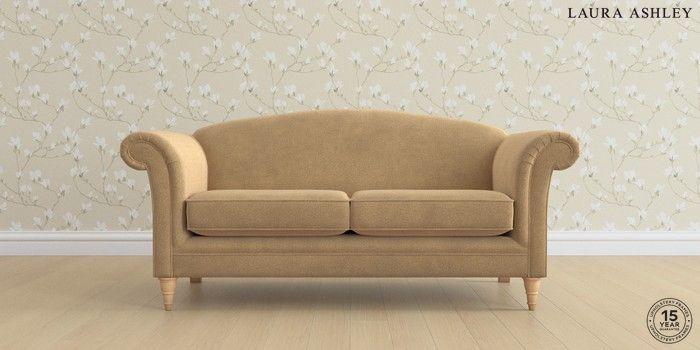 6.12.1 Buy Gloucester by Laura Ashley 3 Seater Small Sofa Lundar Chenille Caramel Natural Low Turned - Light Oak from the Next UK online shop Click here to use our accessible website