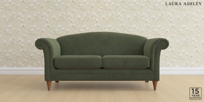 6.12.13 Buy Gloucester by Laura Ashley 3 Seater Small Sofa Lundar Chenille Ivy Green Low Turned - Teak from the Next UK online shop Click here to use our accessible website
