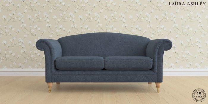 6.12.1 Buy Gloucester by Laura Ashley 3 Seater Small Sofa Lundar Chenille Navy Blue Low Brass Castor - Light Oak from the Next UK online shop Click here to use our accessible website