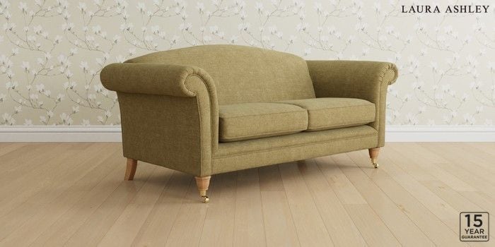 6.12.1 Buy Gloucester by Laura Ashley 3 Seater Small Sofa Orla Gold Natural Low Brass Castor - Light Oak from the Next UK online shop Click here to use our accessible website