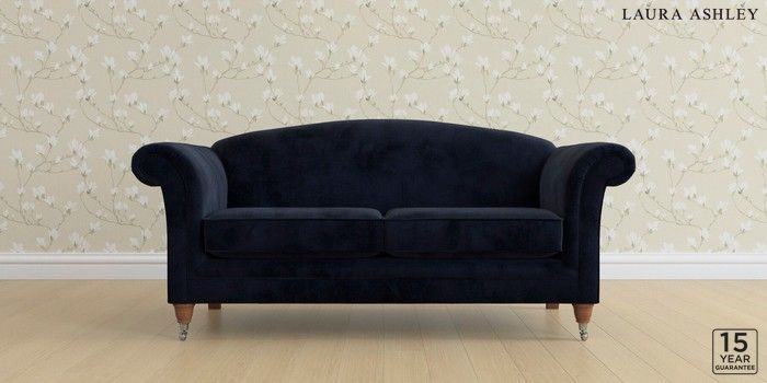 6.12.13 Buy Gloucester by Laura Ashley 3 Seater Small Sofa Orla Midnight Navy Low Chrome Castor - Teak from the Next UK online shop Click here to use our accessible website