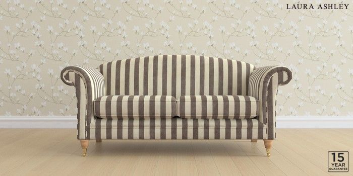 6.12.13 Buy Gloucester by Laura Ashley 3 Seater Small Sofa Orla Stripe Dark Truffle Natural Low Brass Castor - Light Oak from the Next UK online shop Click here to use our accessible website