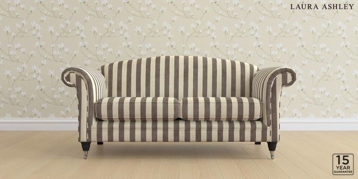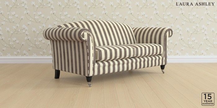 6.12.13 Buy Gloucester by Laura Ashley 3 Seater Small Sofa Orla Stripe Dark Truffle Natural Low Chrome Castor - Black from the Next UK online shop Click here to use our accessible website