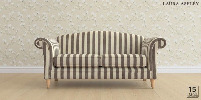 6.12.13 Buy Gloucester by Laura Ashley 3 Seater Small Sofa Orla Stripe Dark Truffle Natural Low Turned - Light Oak from the Next UK online shop Click here to use our accessible website