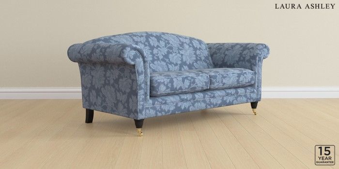 6.12.1 Buy Gloucester by Laura Ashley 3 Seater Small Sofa Tamara Dusky Seaspray Blue Low Brass Castor - Black from the Next UK online shop Click here to use our accessible website