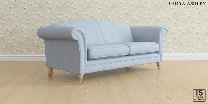 6.12.1 Buy Gloucester by Laura Ashley 3 Seater Sofa Ailsworth Newport Blue Low Brass Castor - Light Oak from the Next UK online shop Click here to use our accessible website