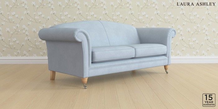 6.12.13 Buy Gloucester by Laura Ashley 3 Seater Sofa Ailsworth Newport Blue Low Chrome Castor - Light Oak from the Next UK online shop Click here to use our accessible website