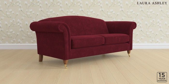 6.12.1 Buy Gloucester by Laura Ashley 3 Seater Sofa Alwyn Velvet Burgundy Red Low Brass Castor - Teak from the Next UK online shop Click here to use our accessible website
