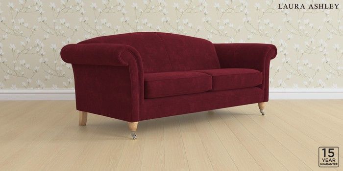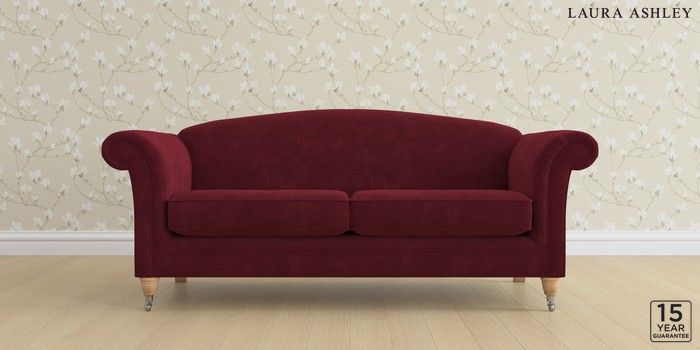 6.12.1 Buy Gloucester by Laura Ashley 3 Seater Sofa Alwyn Velvet Burgundy Red Low Chrome Castor - Light Oak from the Next UK online shop Click here to use our accessible website