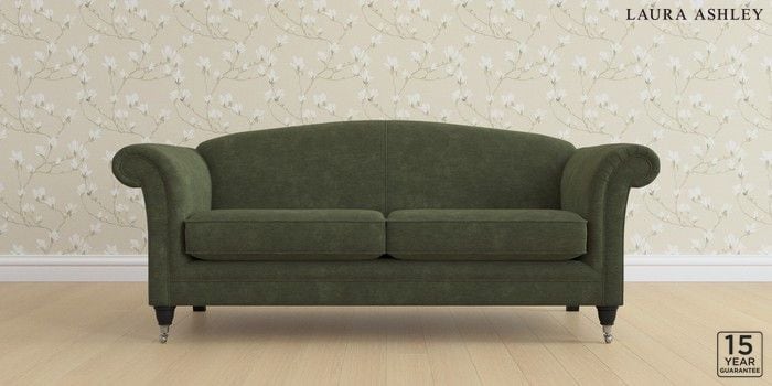 6.12.1 Buy Gloucester by Laura Ashley 3 Seater Sofa Alwyn Velvet Ivy Green Low Chrome Castor - Black from the Next UK online shop Click here to use our accessible website
