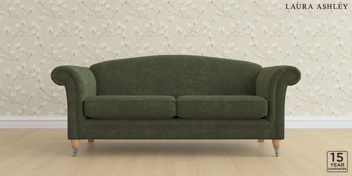6.12.1 Buy Gloucester by Laura Ashley 3 Seater Sofa Alwyn Velvet Ivy Green Low Chrome Castor - Light Oak from the Next UK online shop Click here to use our accessible website