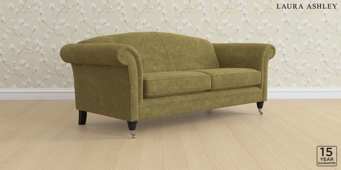 6.12.1 Buy Gloucester by Laura Ashley 3 Seater Sofa Alwyn Velvet Olive Green Low Chrome Castor - Black from the Next UK online shop Click here to use our accessible website