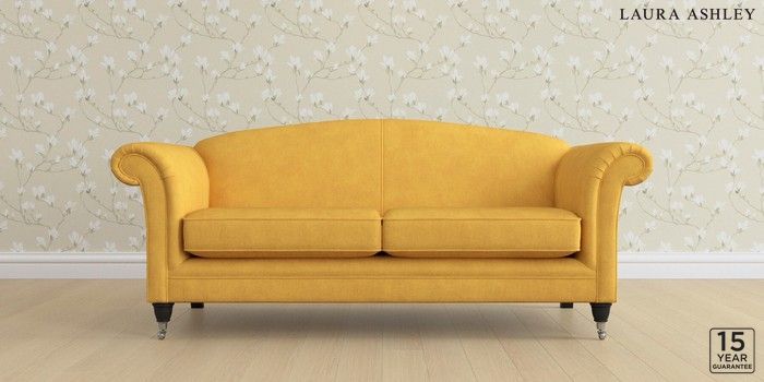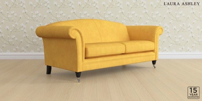 6.12.1 Buy Gloucester by Laura Ashley 3 Seater Sofa Bainton Ochre Yellow Low Chrome Castor - Black from the Next UK online shop Click here to use our accessible website