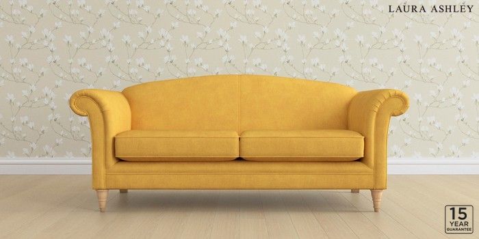 6.12.1 Buy Gloucester by Laura Ashley 3 Seater Sofa Bainton Ochre Yellow Low Turned - Light Oak from the Next UK online shop Click here to use our accessible website