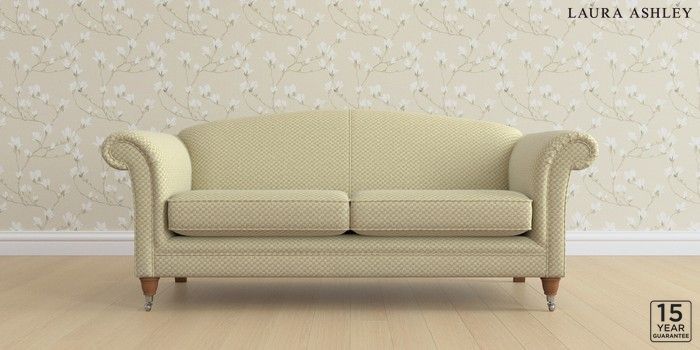 6.12.13 Buy Gloucester by Laura Ashley 3 Seater Sofa Chequers Hedgerow Green Low Chrome Castor - Teak from the Next UK online shop Click here to use our accessible website