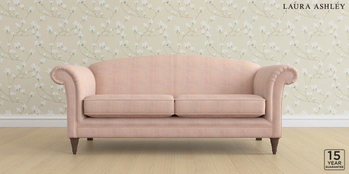 6.12.1 Buy Gloucester by Laura Ashley 3 Seater Sofa Edwin Chenille Blush Pink Low Turned - Chestnut from the Next UK online shop Click here to use our accessible website