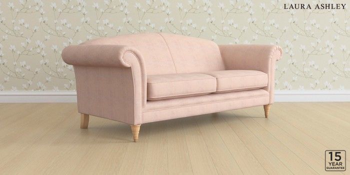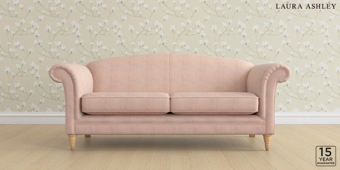6.12.1 Buy Gloucester by Laura Ashley 3 Seater Sofa Edwin Chenille Blush Pink Low Turned - Light Oak from the Next UK online shop Click here to use our accessible website