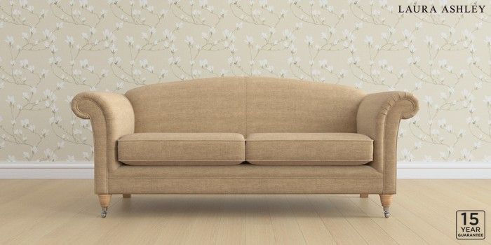6.12.1 Buy Gloucester by Laura Ashley 3 Seater Sofa Edwin Chenille Gold Natural Low Chrome Castor - Light Oak from the Next UK online shop Click here to use our accessible website