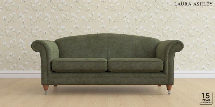 6.12.13 Buy Gloucester by Laura Ashley 3 Seater Sofa Edwin Chenille Hedgerow Green Low Chrome Castor - Teak from the Next UK online shop Click here to use our accessible website