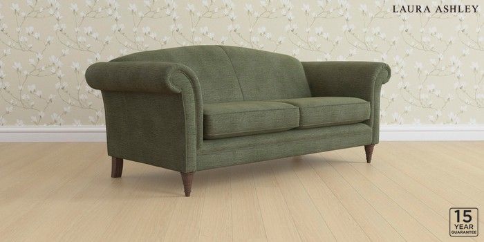 6.12.13 Buy Gloucester by Laura Ashley 3 Seater Sofa Edwin Chenille Hedgerow Green Low Turned - Chestnut from the Next UK online shop Click here to use our accessible website