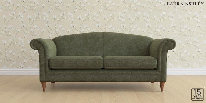 6.12.13 Buy Gloucester by Laura Ashley 3 Seater Sofa Edwin Chenille Hedgerow Green Low Turned - Teak from the Next UK online shop Click here to use our accessible website