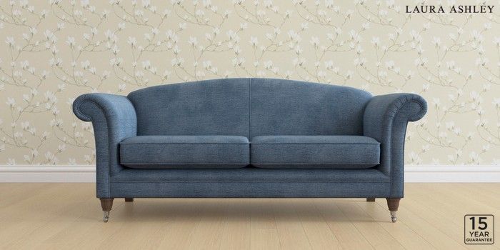 6.12.1 Buy Gloucester by Laura Ashley 3 Seater Sofa Edwin Chenille Seaspray Blue Low Chrome Castor - Chestnut from the Next UK online shop Click here to use our accessible website