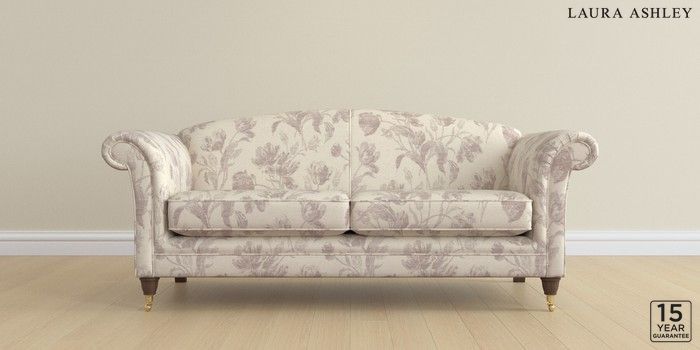 6.12.1 Buy Gloucester by Laura Ashley 3 Seater Sofa Gosford Weave Dusky Plum Purple Low Brass Castor - Chestnut from the Next UK online shop Click here to use our accessible website