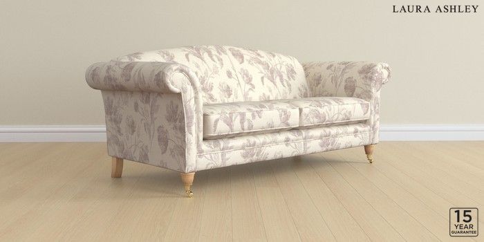 6.12.1 Buy Gloucester by Laura Ashley 3 Seater Sofa Gosford Weave Dusky Plum Purple Low Brass Castor - Light Oak from the Next UK online shop Click here to use our accessible website